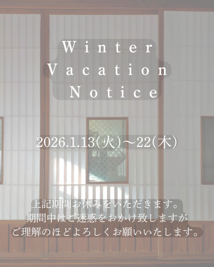 より良いお料理とサービスをお客様にお届けできるよう、誠に勝手ながらスタッフのリフレッシュと充電のため、下記の期間冬休みをいただきます。